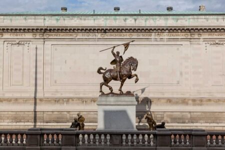 Desde un principio, Huntington tenía la intención de añadir esculturas a los edificios y asegurarse de su permanencia convirtiéndolas en monumentales obras de arte. En 1923, tras sus nupcias con la escultora Anna Vaughn Hyatt, comenzaron a tomar forma sus planes para colocar esculturas en Audubon Terrace. Dominando el espacio central de la explanada inferior de la Hispanic Society, encontramos la gigantesca estatua ecuestre de bronce de El Cid Campeador.