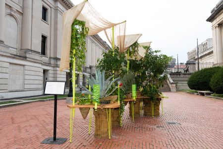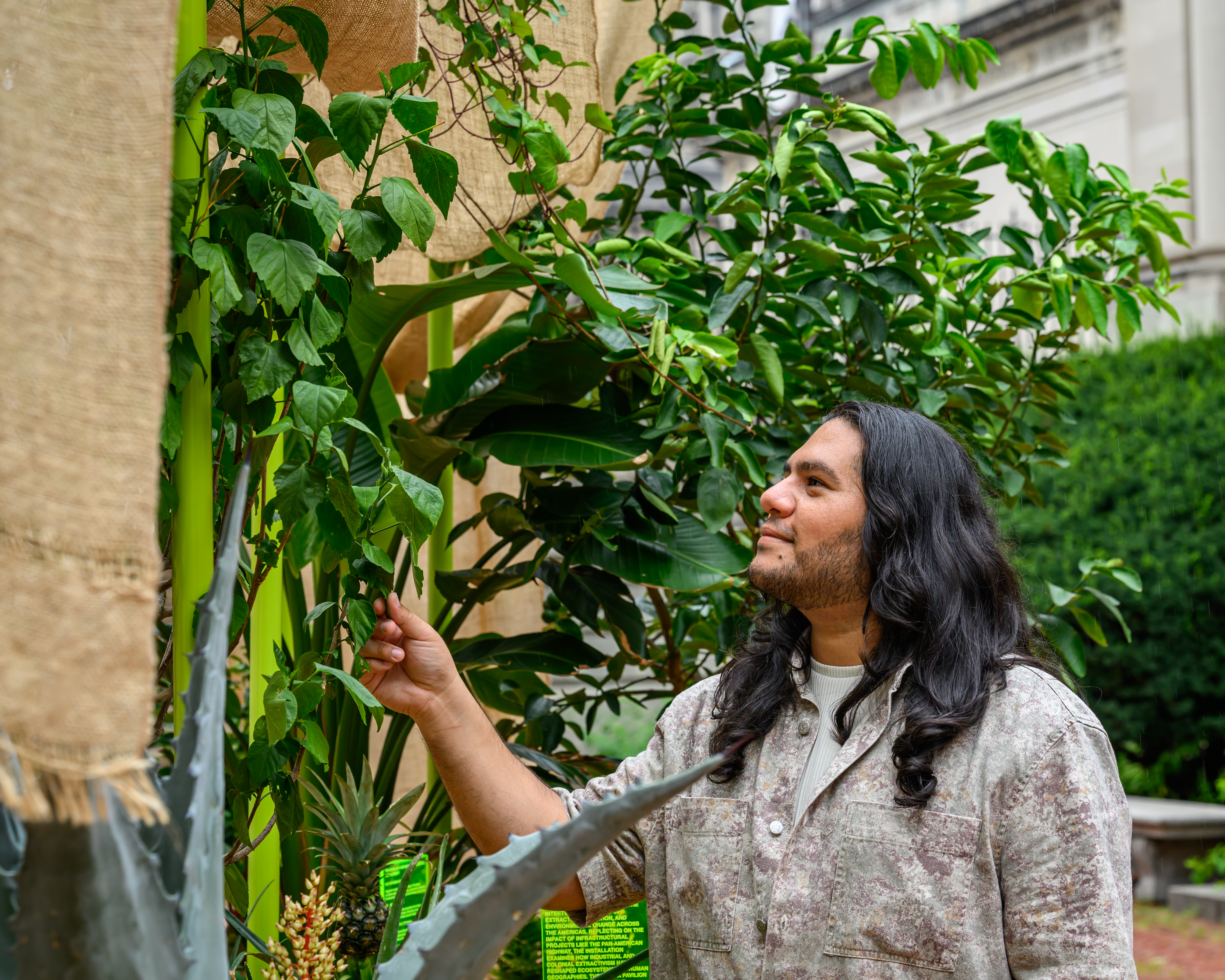 Conceived as a living map of disrupted ecosystems, NATURA EXTRACTA explores how colonial and industrial extractivism have reshaped the natural environment and human geographies. The site-specific project by Oscar M. Caballero takes inspiration from the Pan-American Highway, the vast network of roads stretching more than 19,000 miles from Alaska to Argentina that was built over the course of the 20th century. Recontextualizing both the form of this massive infrastructural project and the native flora of the regions it intersects, Caballero explores the complex relationship between extraction, environmental transformation and the built environment. The immersive installation is constructed of plywood, mesh, ceramics and organic matter and will be anchored in the plaza as a lightweight tensile tent and series of freestanding sculptural fixtures.