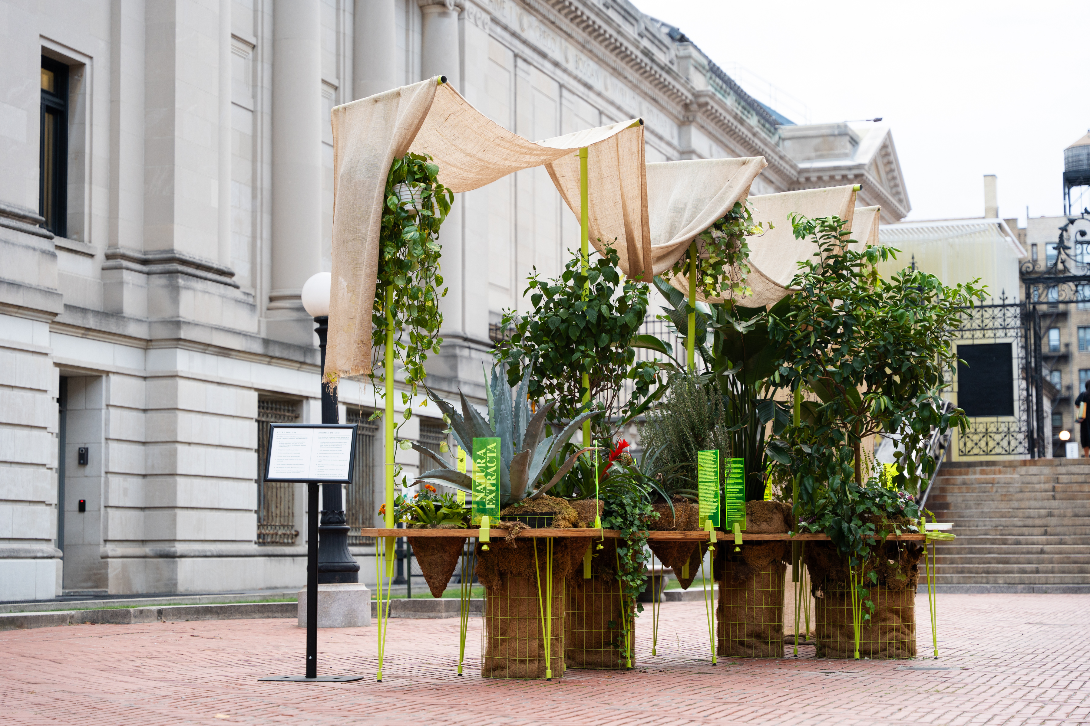 “NATURA EXTRACTA: Continental Ecologies & Inter-Territorial Affairs” is the selection for the 2025 open call for Art on Audubon Terrace, a joint effort between the Hispanic Society Museum & Library and the Northern Manhattan Arts Alliance (NoMAA) in which local artists are invited to submit an original work to be installed on the Hispanic Society’s public Audubon Terrace.