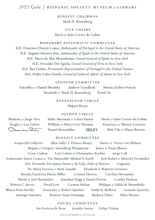The Hispanic Society Museum & Library’s Annual Gala is an elegant evening where we celebrate our supporters and honor outstanding individuals who have made significant contributions to Hispanic arts, literature, and culture. The black-tie dinner brings together leaders from the realms of philanthropy, art, business, fashion, and the political realm to provide vital operating support to the Hispanic Society.