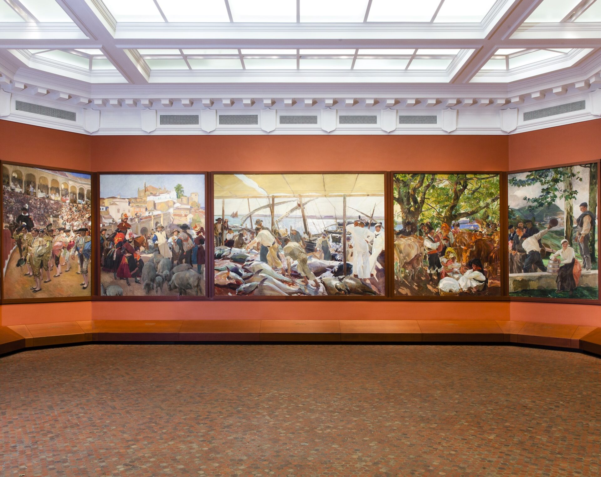 All of the canvases were restored in 2006-2007 prior to an exhibition tour in Spain. Sorolla’s Vision of Spain was exhibited in Valencia, Seville, MΓ‘laga, Bilbao, Barcelona, and Madrid between November 2007 and February 2010. Never before on public view in Spain, Sorolla’s masterwork created a sensation that attracted over 2,000,000 visitors, making it the most visited exhibition in Spain’s history. The fully renovated Sorolla Vision of Spain Gallery was inaugurated in 2010 upon the return of the paintings.